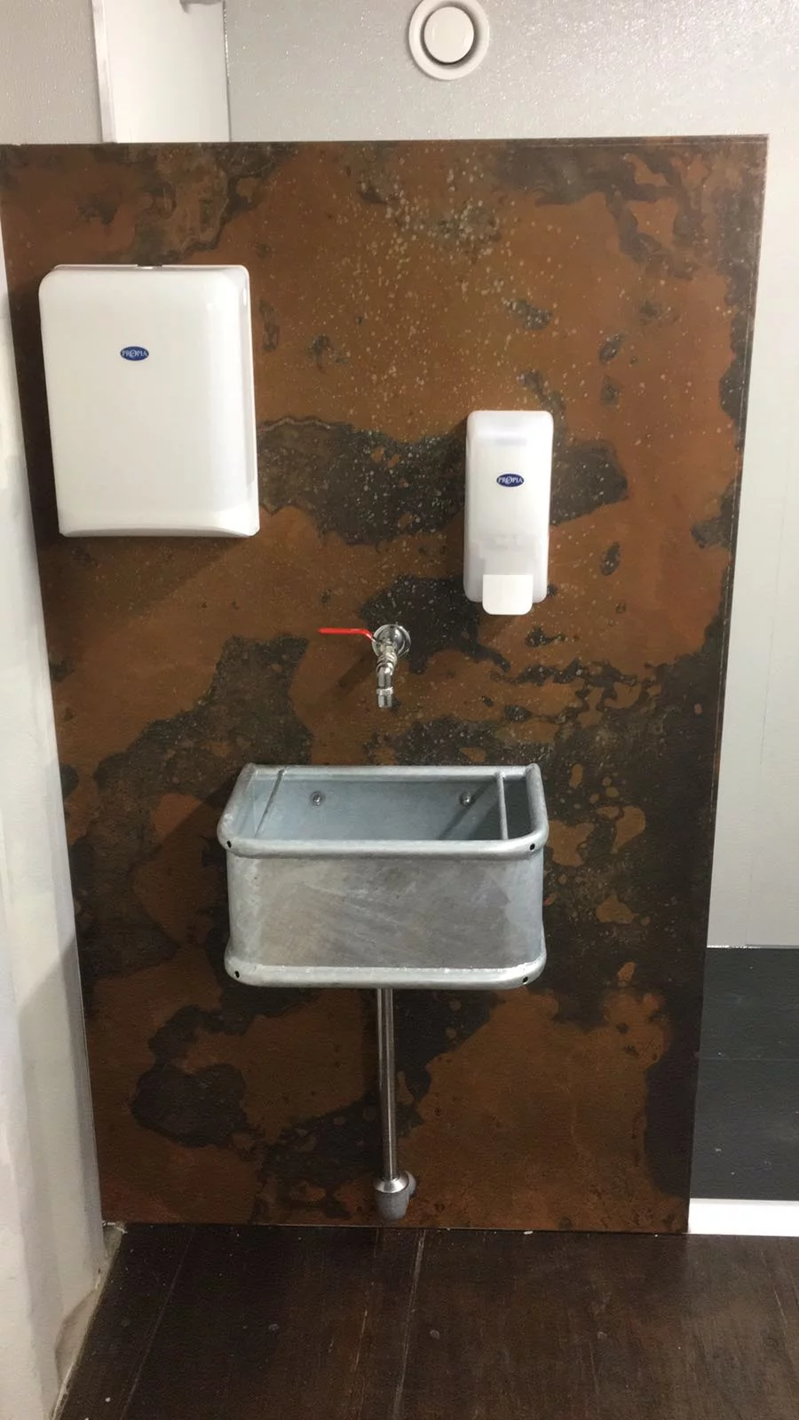 Firma Buitelaar - Wasbak tegen Cortenstalen achterwand