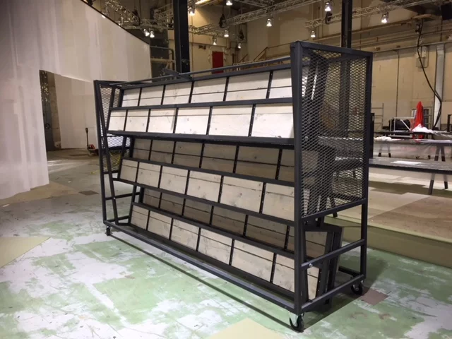 Firma Buitelaar - Beursstand Pannenrekken stellingkasten verrijdbaar
