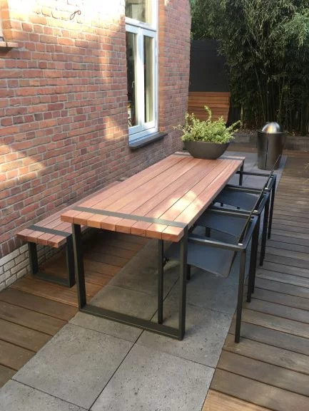 Firma Buitelaar - Terrastafel met bank - uit metaal en hout