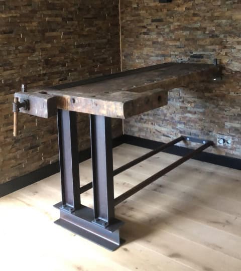 Firma Buitelaar - Bartafel werkbank statafel met bankschroef en stalen onderframe