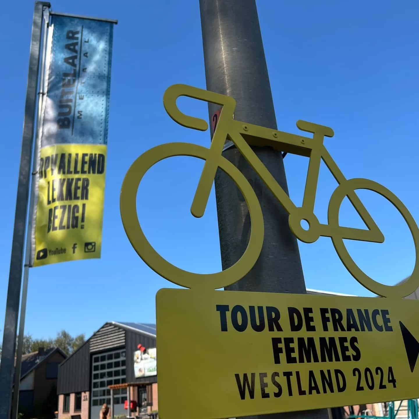 Firma Buitelaar - Gemeente Westland Tour de France Femme 2024 Gele verkeersbord Routebordjes Gele Fietstoer